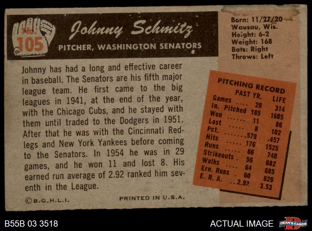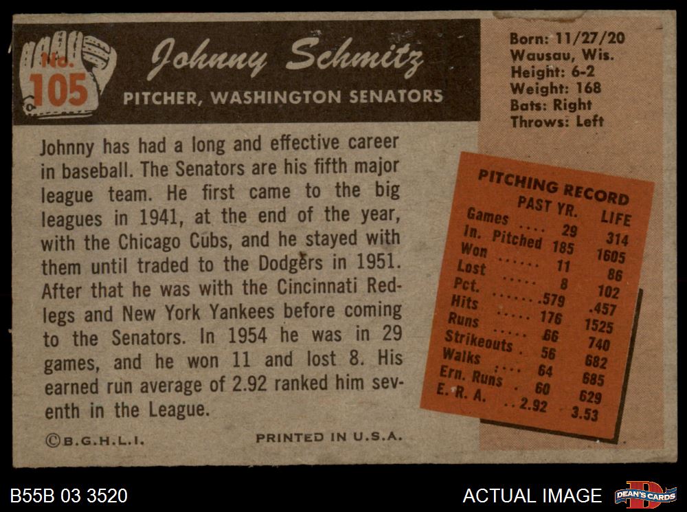 1955 Bowman #105 Johnny Schmitz