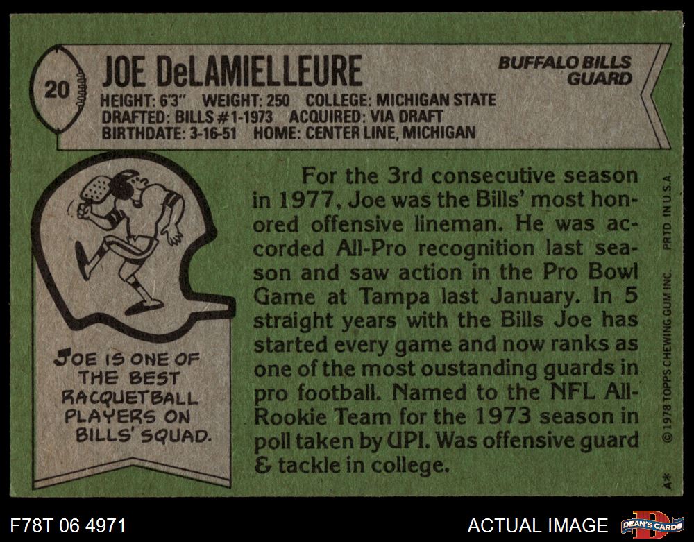 1978 Topps #20 Joe DeLamielleure