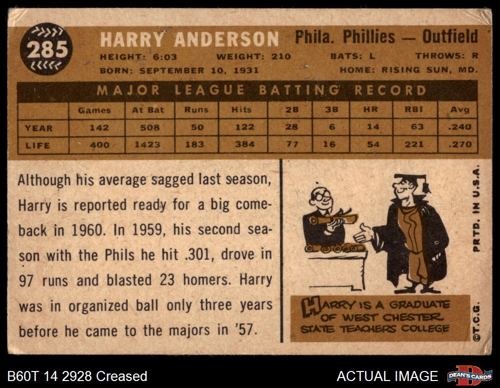 1960 Topps #285 Harry Anderson 2 - GOOD
