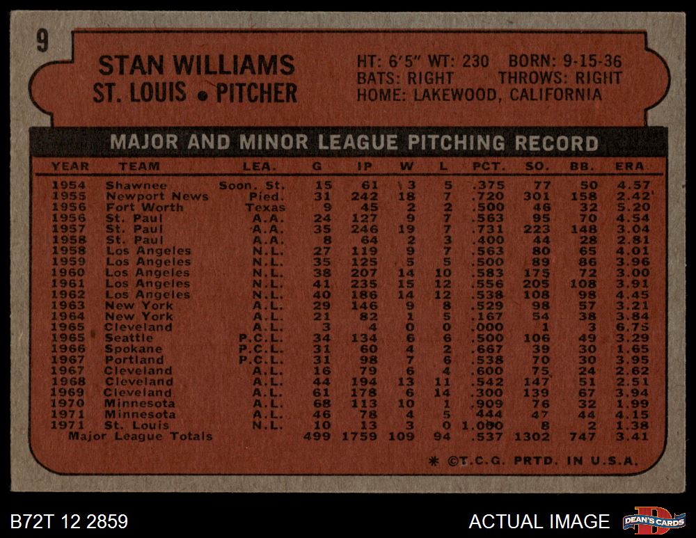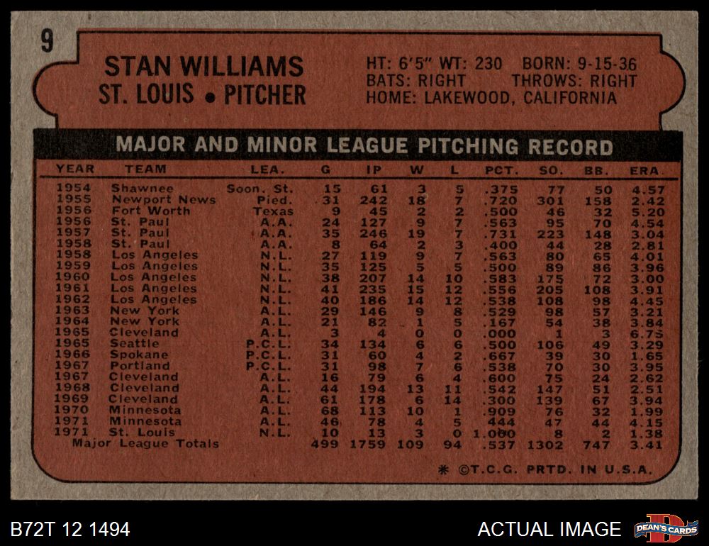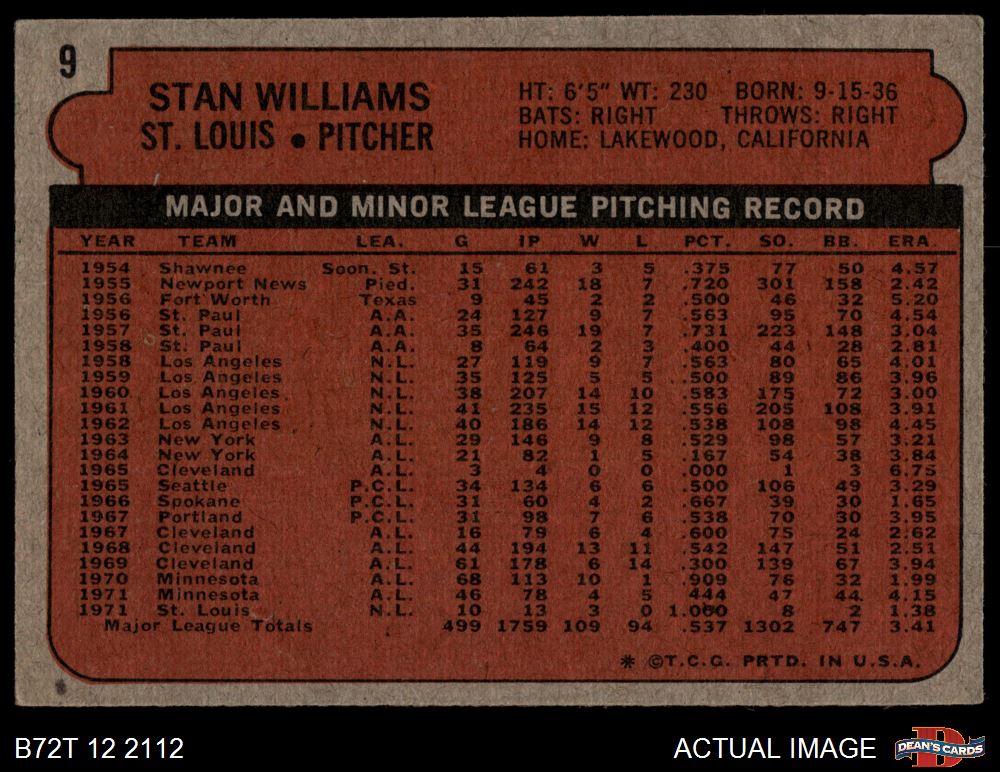 1972 Topps #9 Stan Williams
