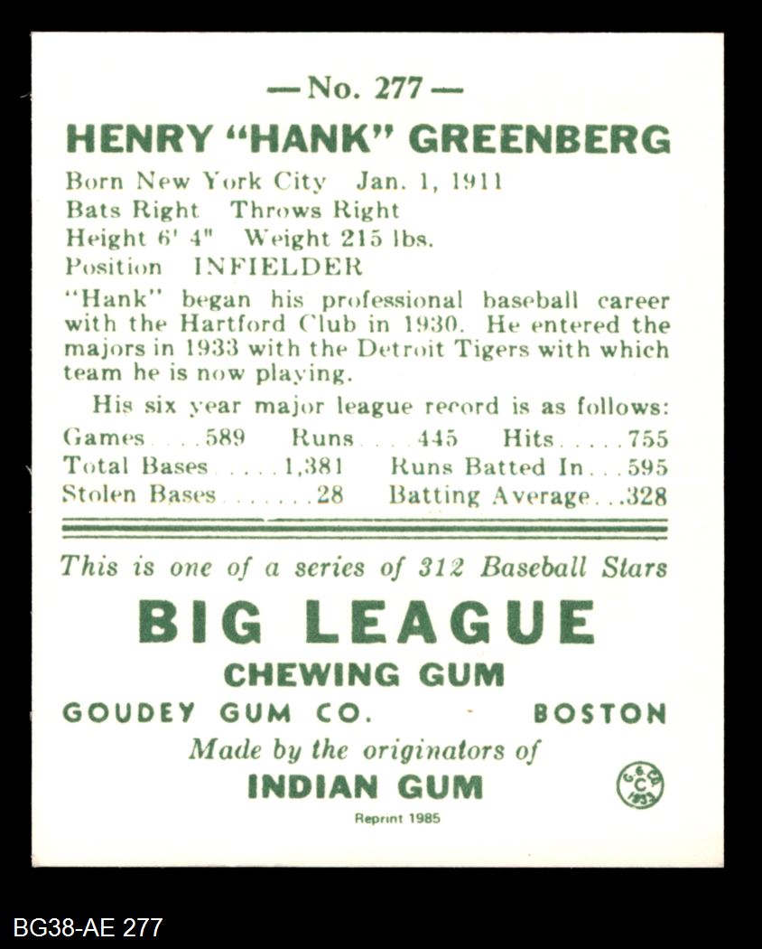 1938 Goudey Heads-Up Reprint #277 Hank Greenberg 8 - NM/MT