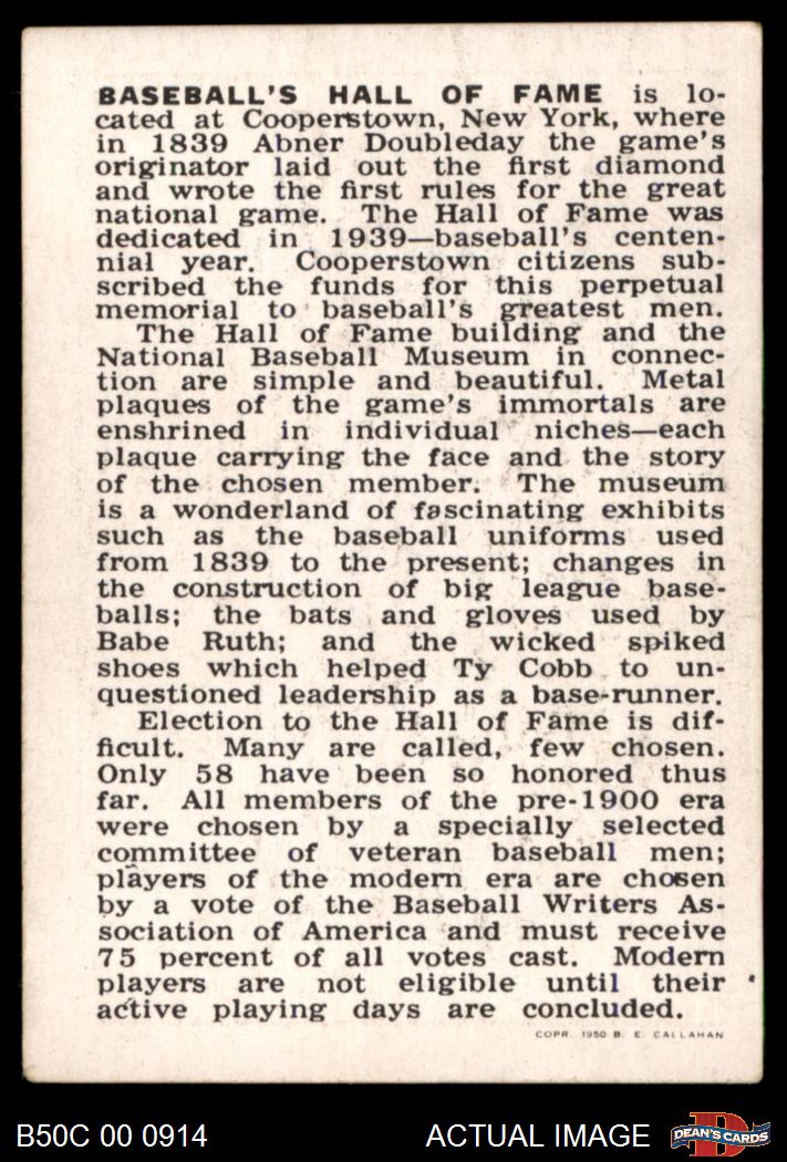 1950 Callahan Hall of Fame playing days are concluded. last line on Back Museum Exterior View 3 - VG