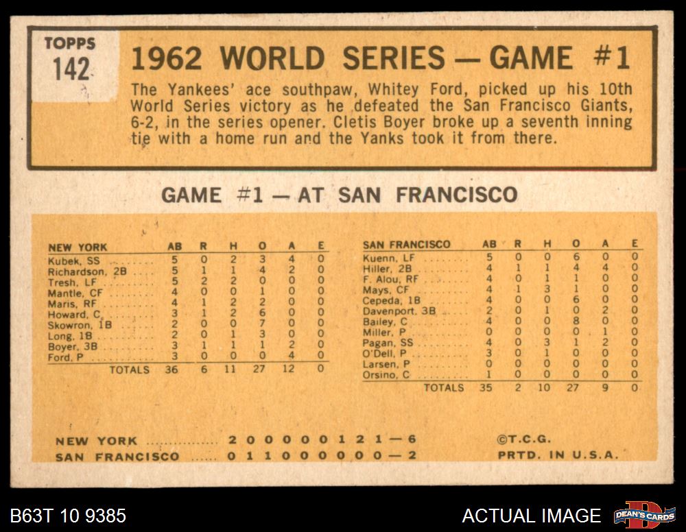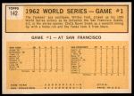 1963 Topps #142 - Whitey Ford 1962 World Series - Game #1 - Yanks' Ford Wins Series Opener 6 - EX/MT