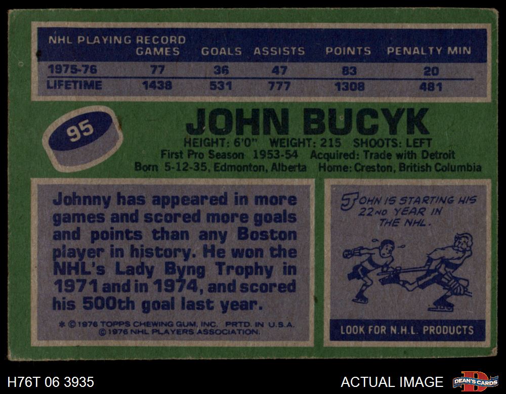 1976 Topps #95 Johnny Bucyk 3.5 - VG+