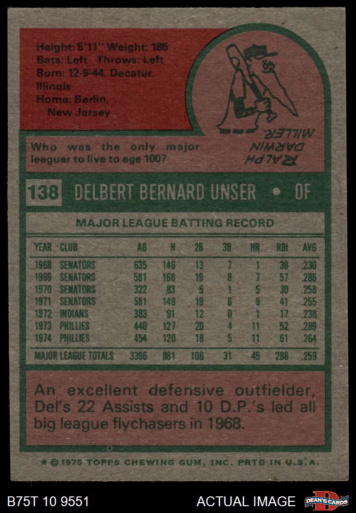 1975 Topps #138 Del Unser