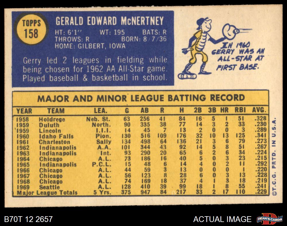 1970 Topps #158 Jerry McNertney