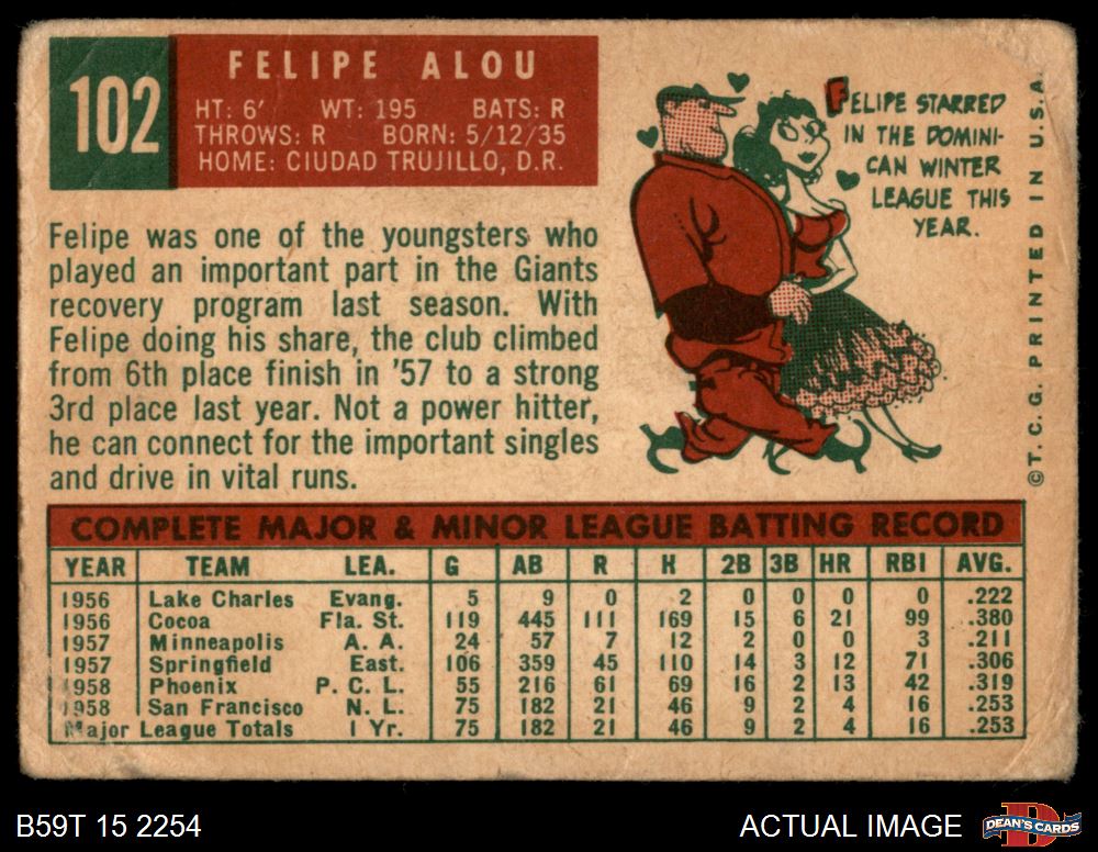 1959 Topps #102 Felipe Alou Front Thumbnail