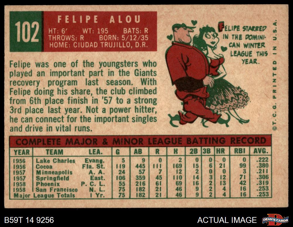 1959 Topps #102 Felipe Alou 4 - VG/EX