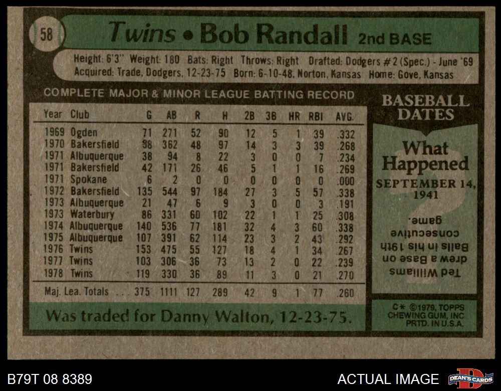 1979 Topps #58 Bob Randall 5 - EX