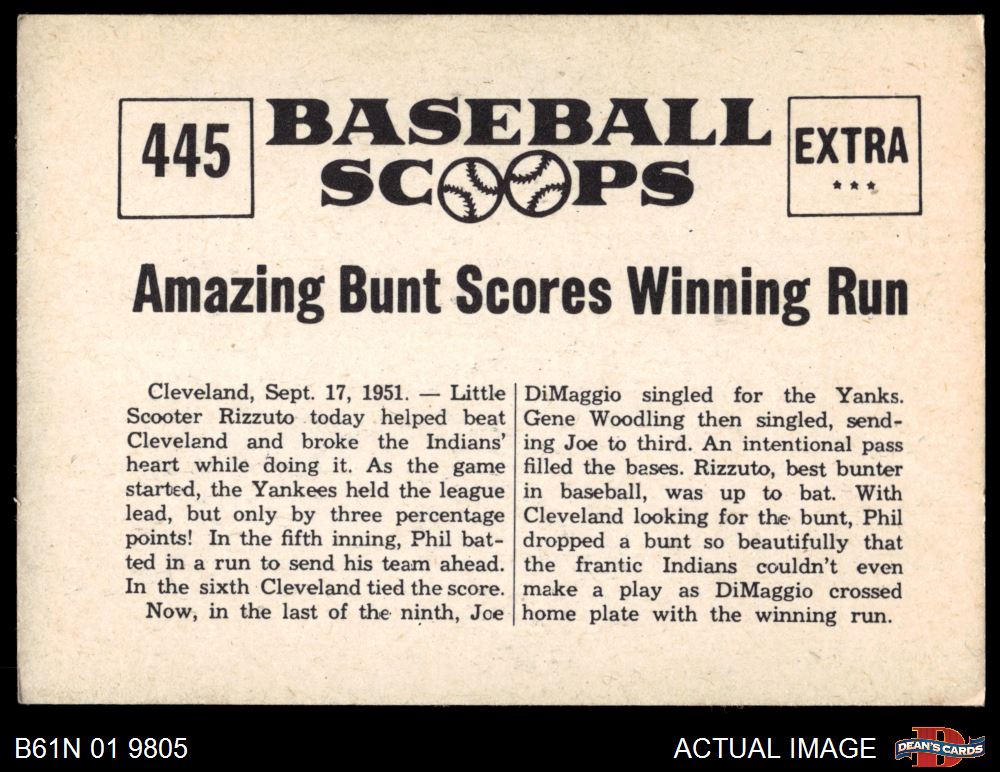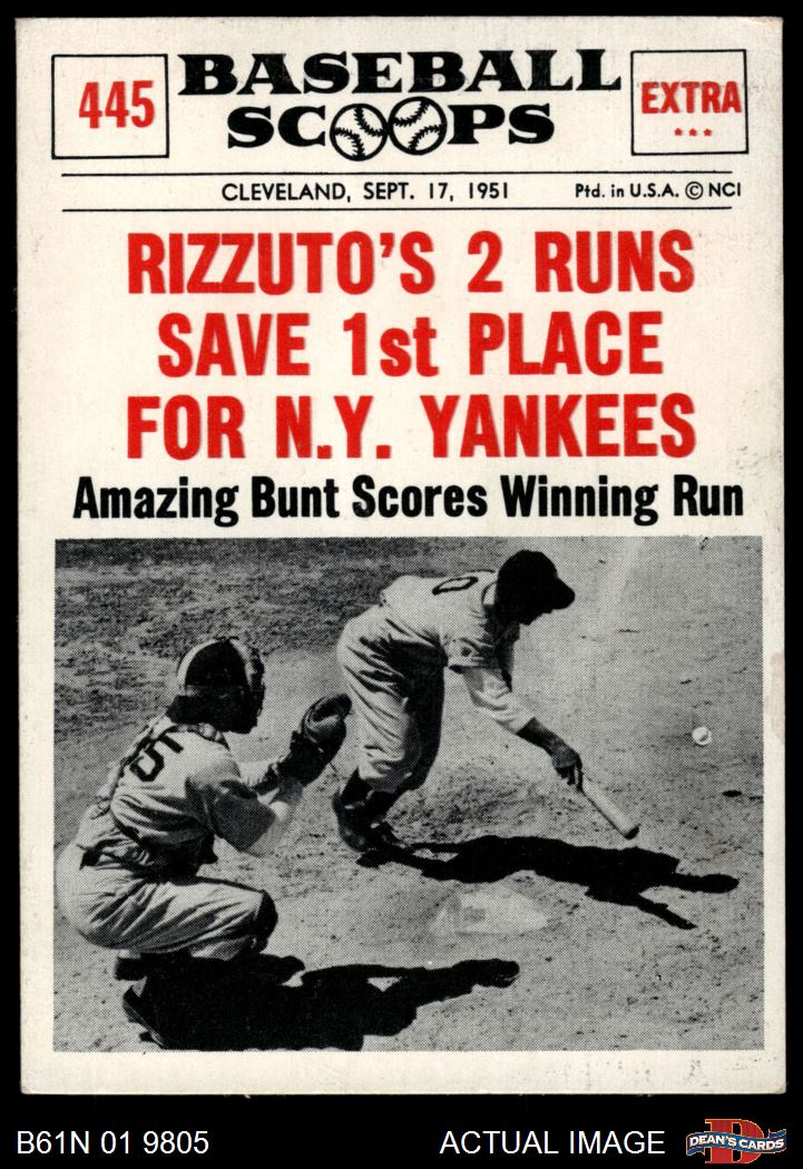 1961 Nu-Card Scoops #445 - Phil Rizzuto 2 Runs Save 1st Place for NY Yankees 7 - NM