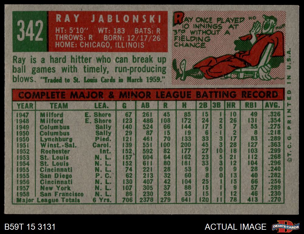 1959 Topps #342 Ray Jablonski