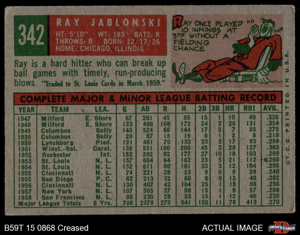 1959 Topps #342 Ray Jablonski 2 - GOOD