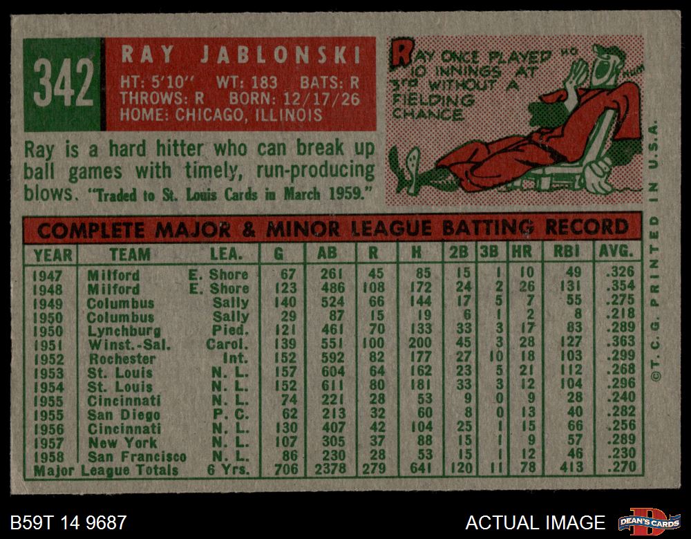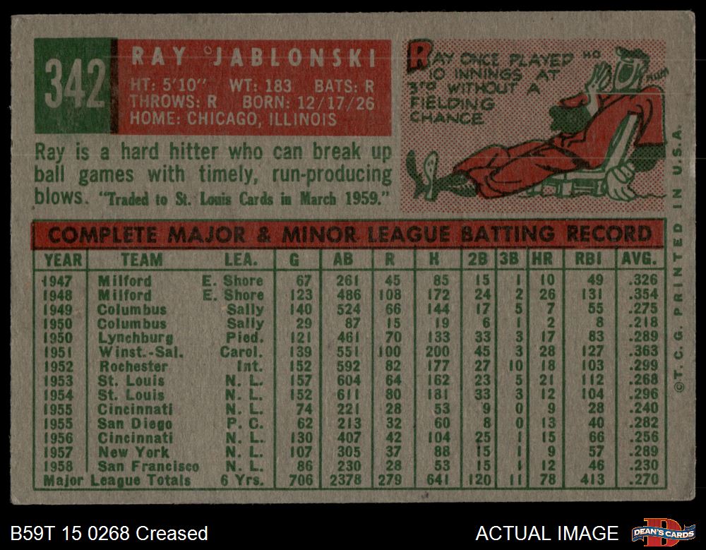 1959 Topps #342 Ray Jablonski Front Thumbnail