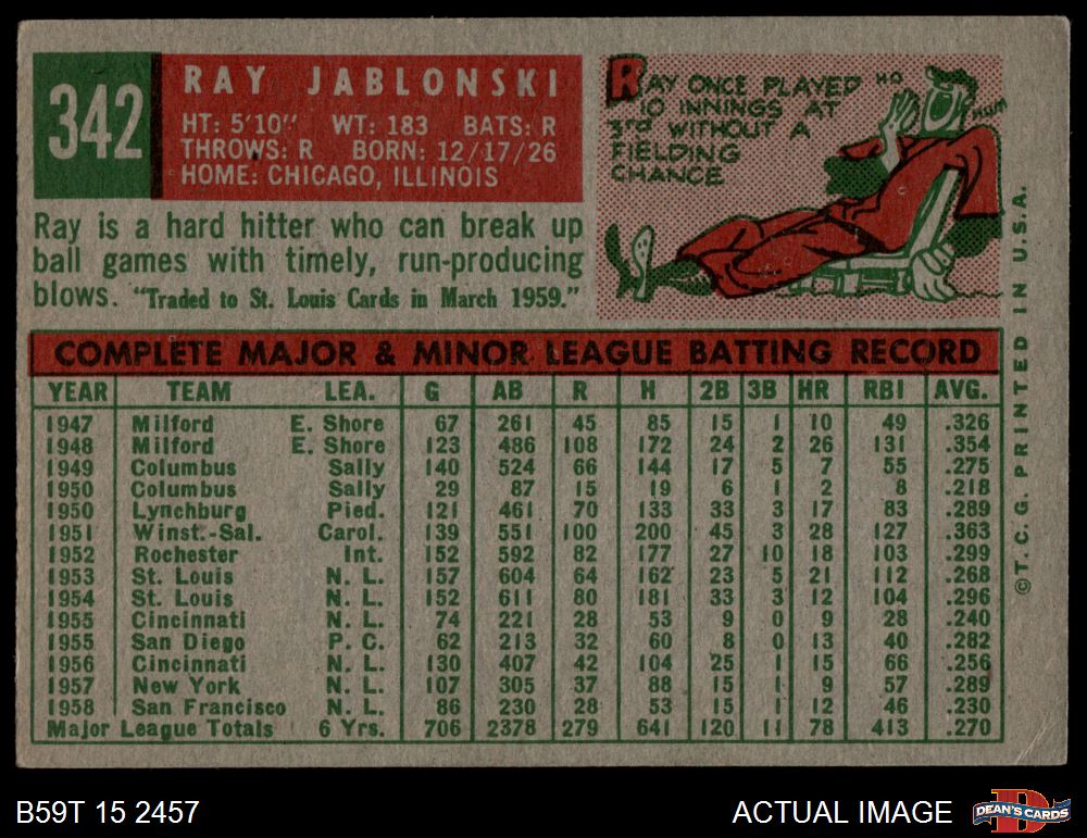 1959 Topps #342 Ray Jablonski 5 - EX