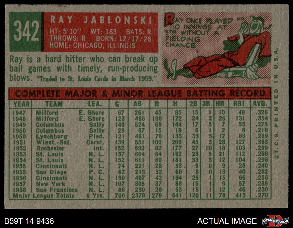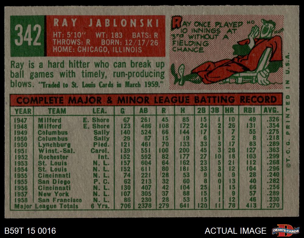 1959 Topps #342 Ray Jablonski 6 - EX/MT