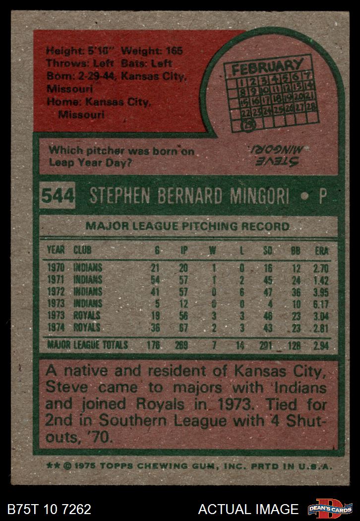 1975 Topps #544 Steve Mingori 4 - VG/EX
