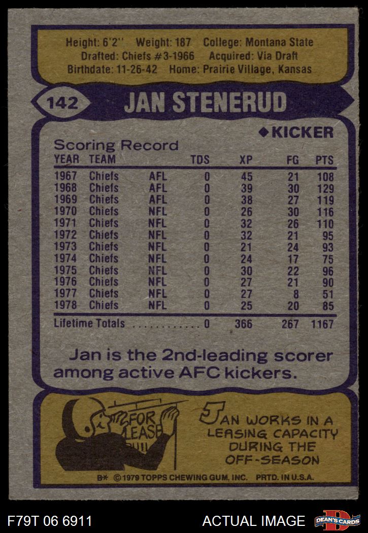 1979 Topps #142 Jan Stenerud