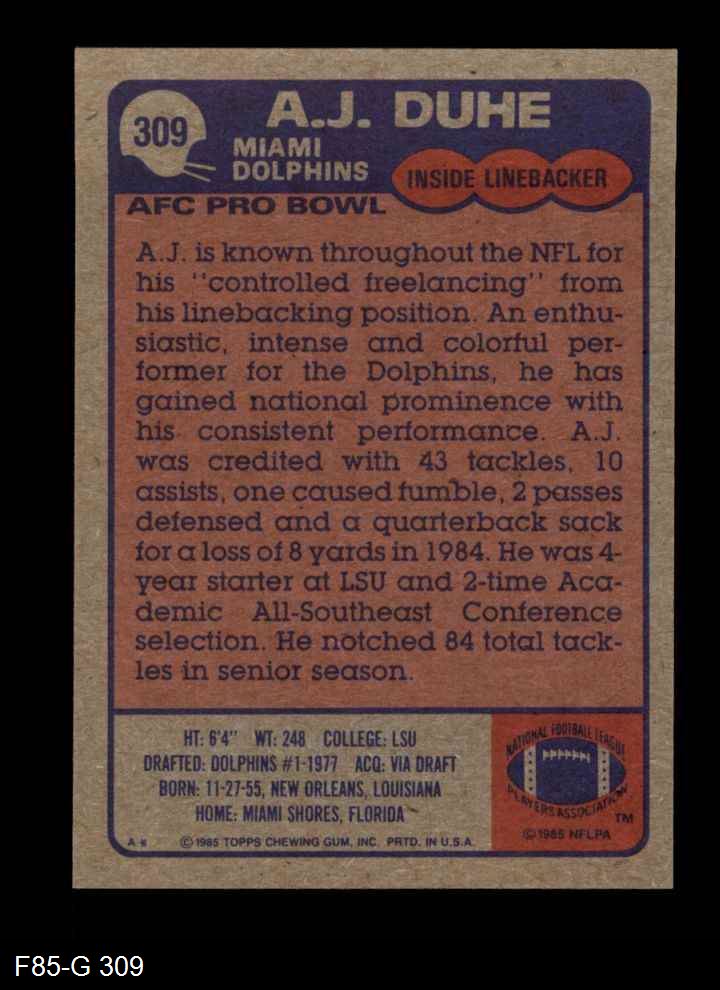 1985 Topps Football Cards (1,086 available)1985 Topps Dolphins (71 available)