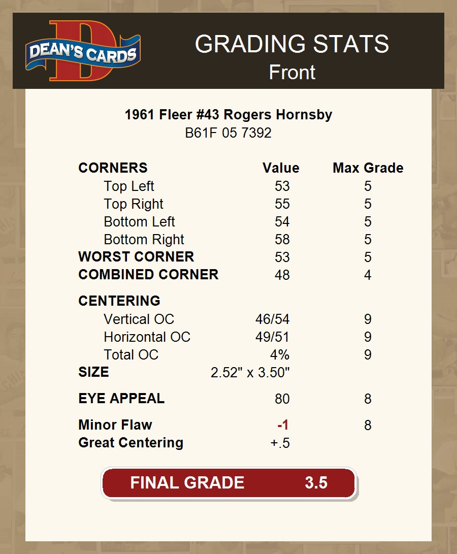 1961 Fleer #43 Rogers Hornsby 3.5 - VG+