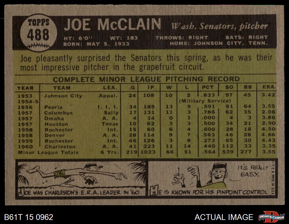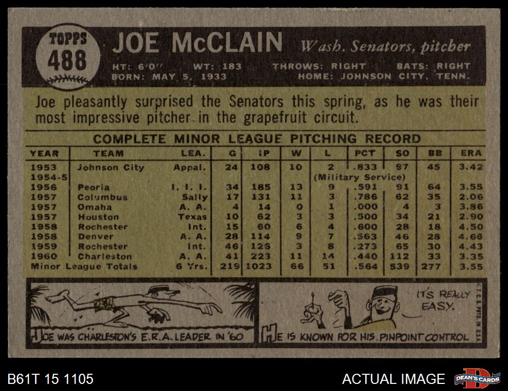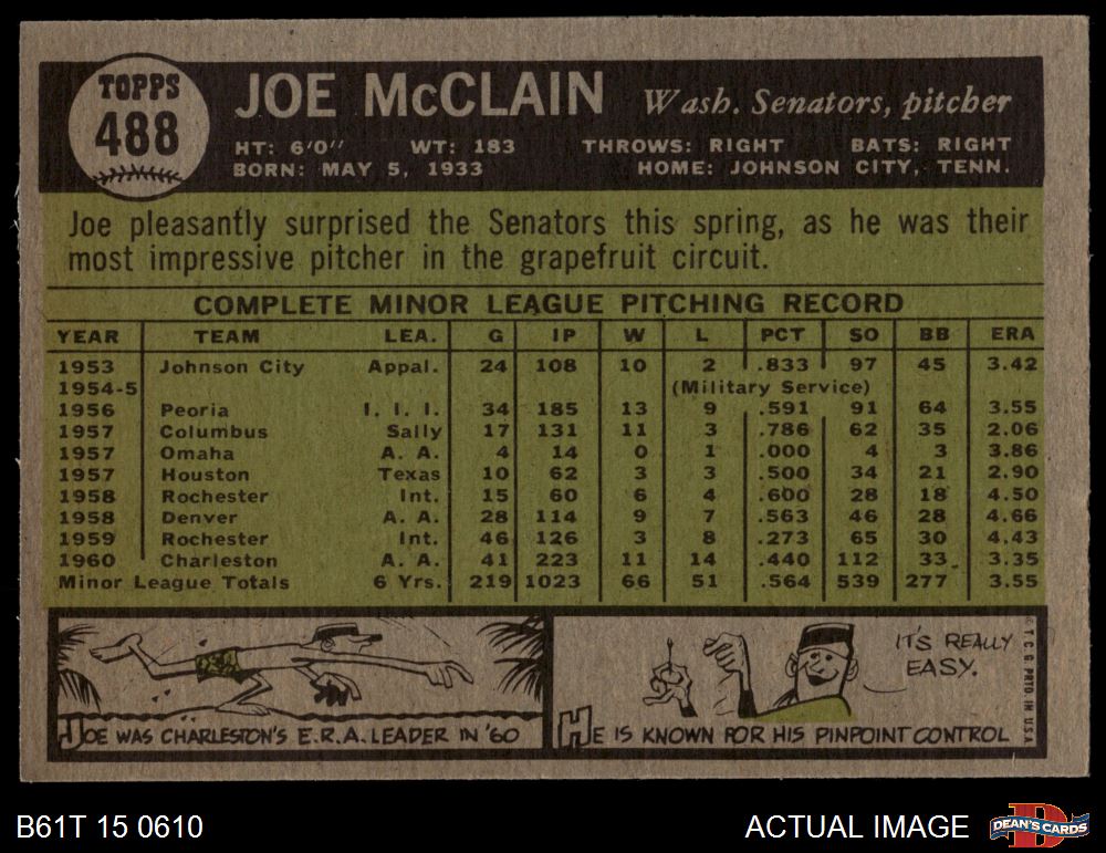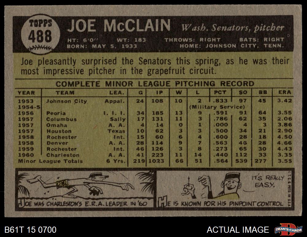 1961 Topps #488 Joe McClain