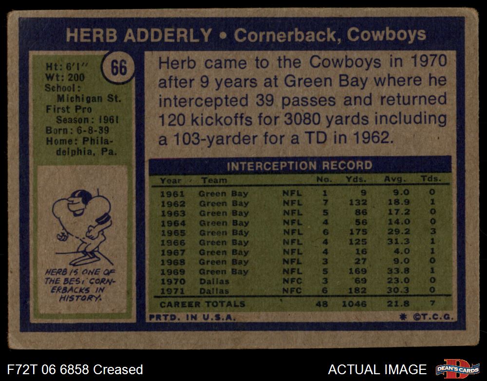1972 Topps #66 Misspelled as Adderly Herb Adderley 1 - POOR