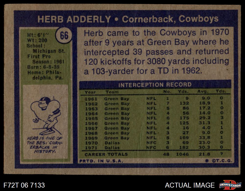 1972 Topps #66 Misspelled as Adderly Herb Adderley 1.5 - FAIR