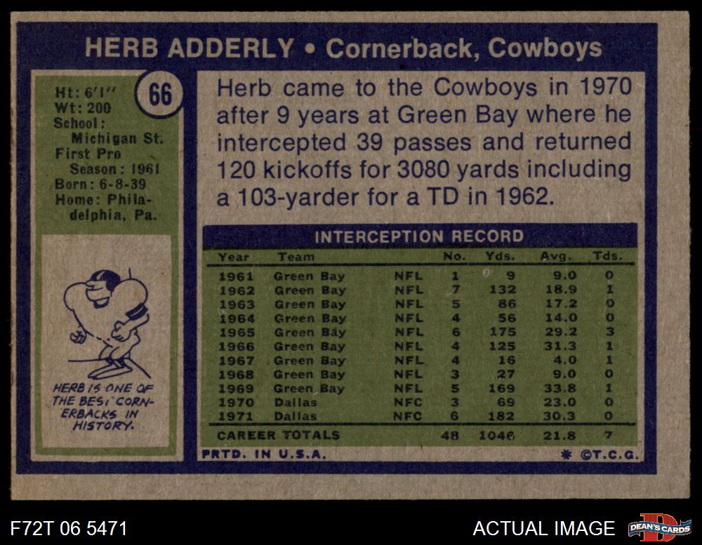 1972 Topps #66 Misspelled as Adderly Herb Adderley 3 - VG