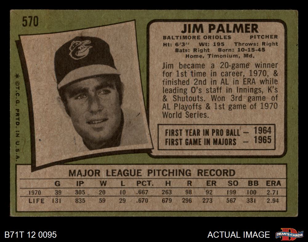 1971 Topps #570 Jim Palmer 3 - VG