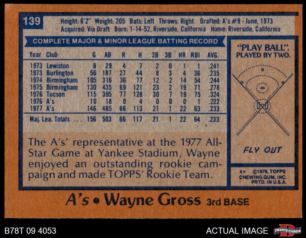 1978 Topps #139 Wayne Gross 5 - EX