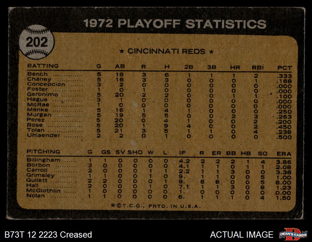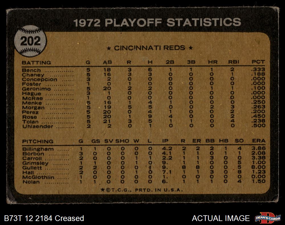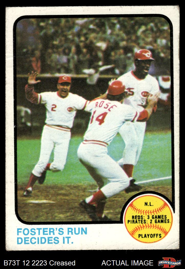 1973 Topps #202 - George Foster / Pete Rose / Alex Grammas 1972 NL Playoffs - Foster's Run Decides It 2 - GOOD