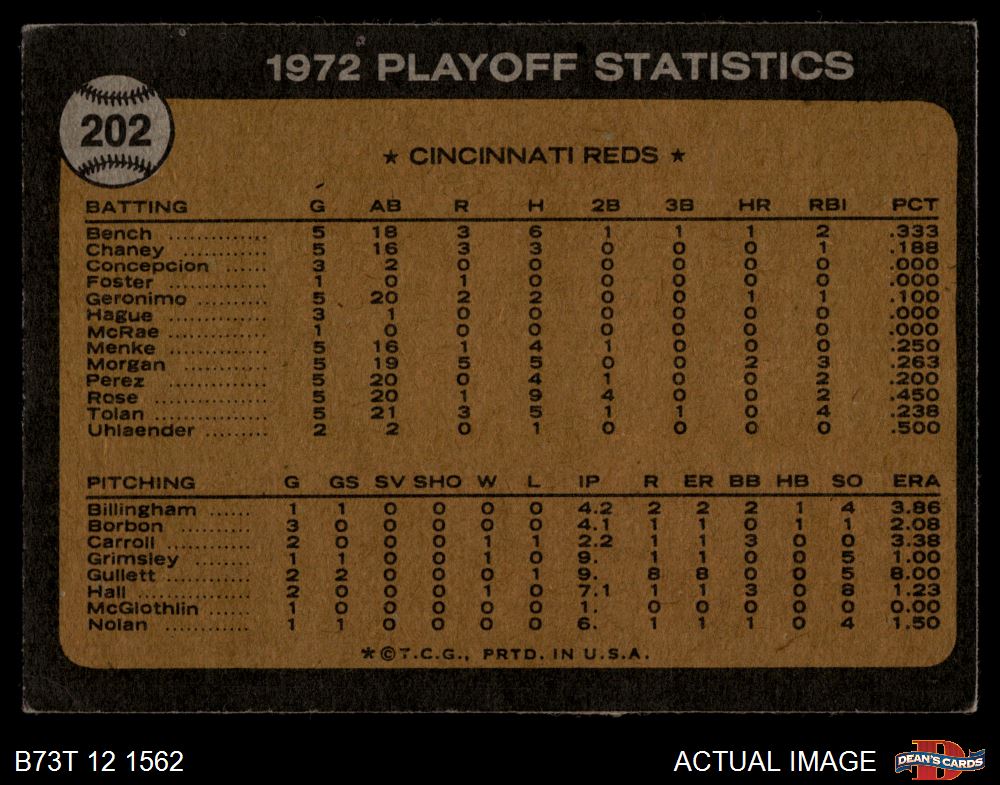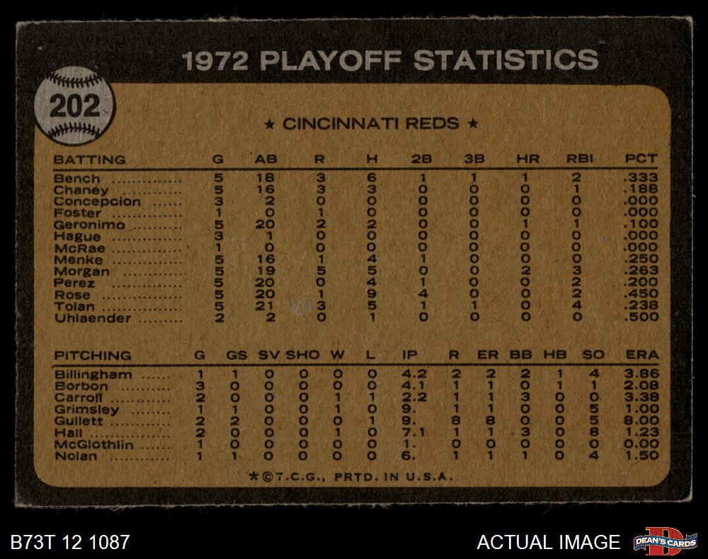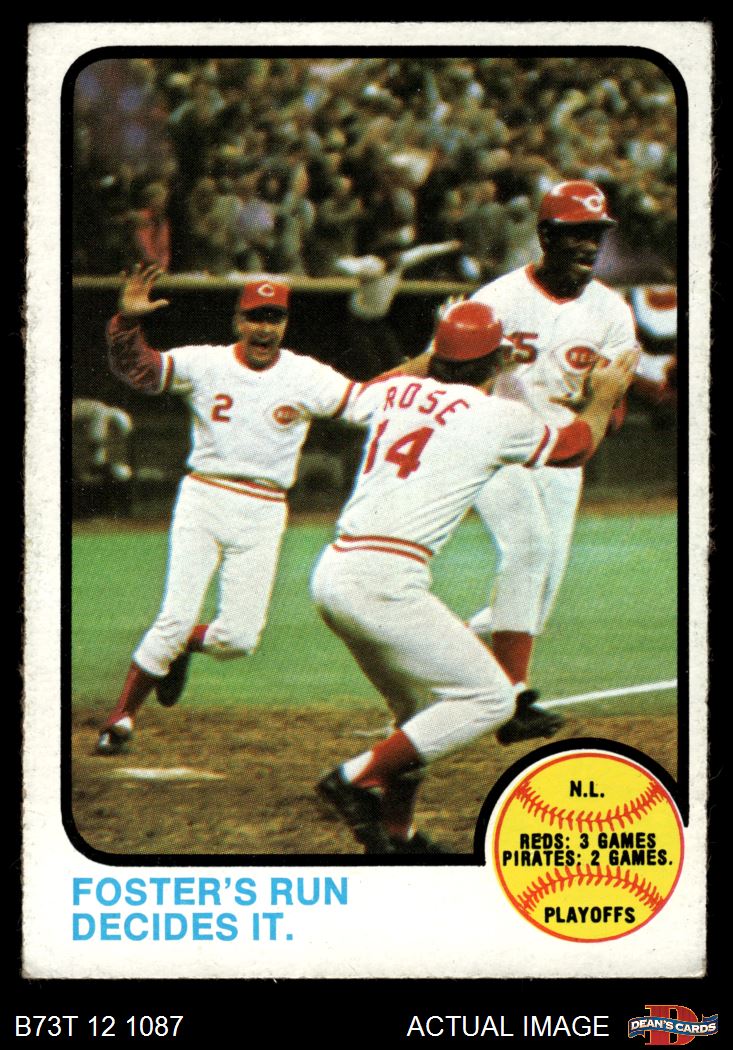 1973 Topps #202 - George Foster / Pete Rose / Alex Grammas 1972 NL Playoffs - Foster's Run Decides It 3 - VG
