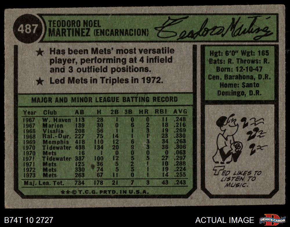 1974 Topps #487 Ted Martinez 3 - VG