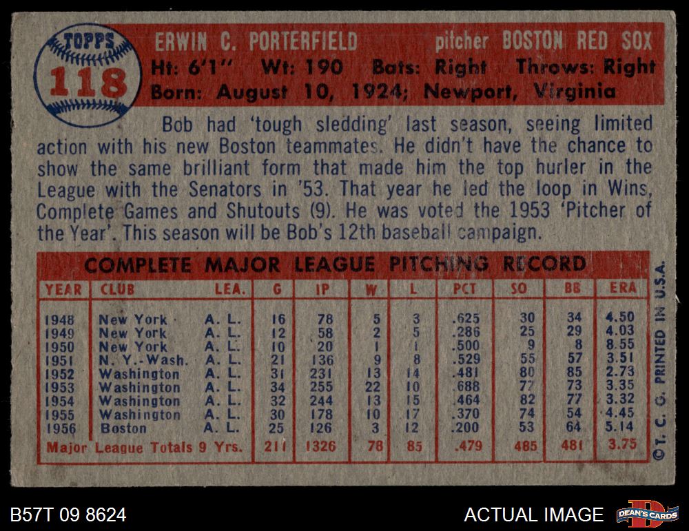 1957 Topps #118 Bob Porterfield 4 - VG/EX