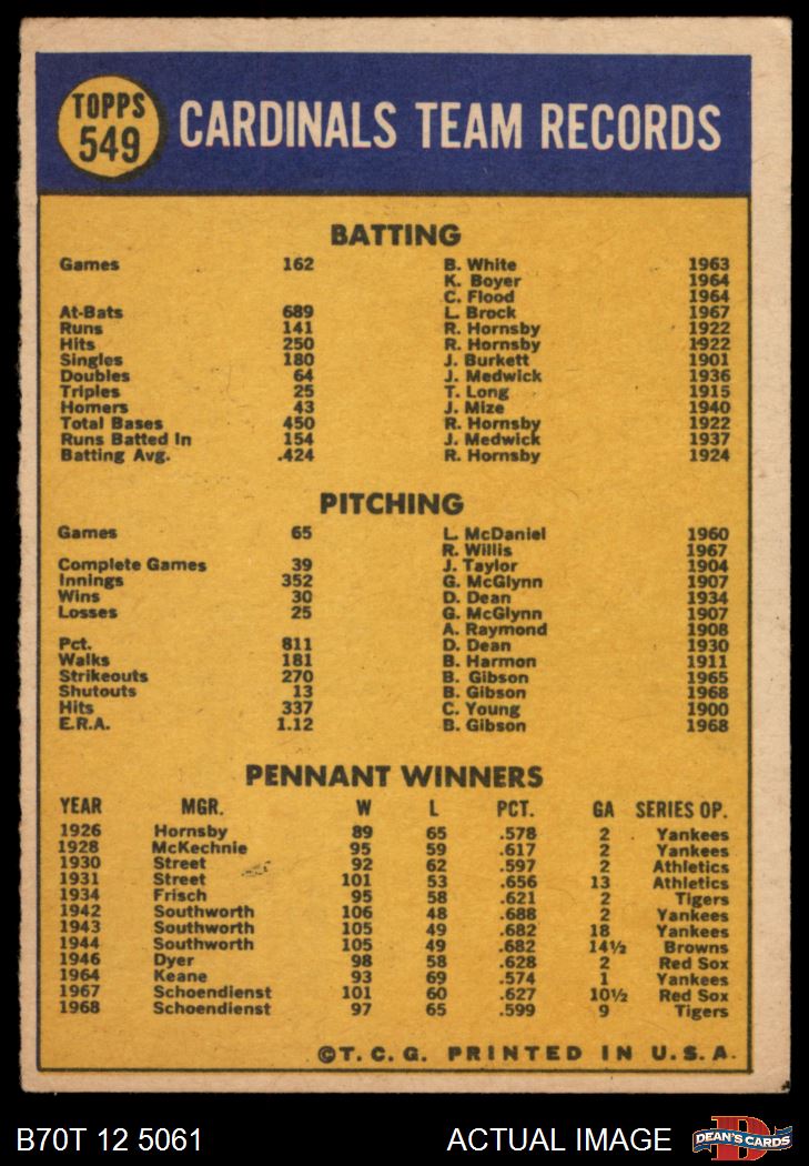 1970 Topps Baseball Cards (11,936 available)1970 Topps Cardinals (865 available)