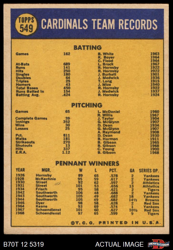1970 Topps Baseball Cards (11,434 available)1970 Topps Cardinals (820 available)