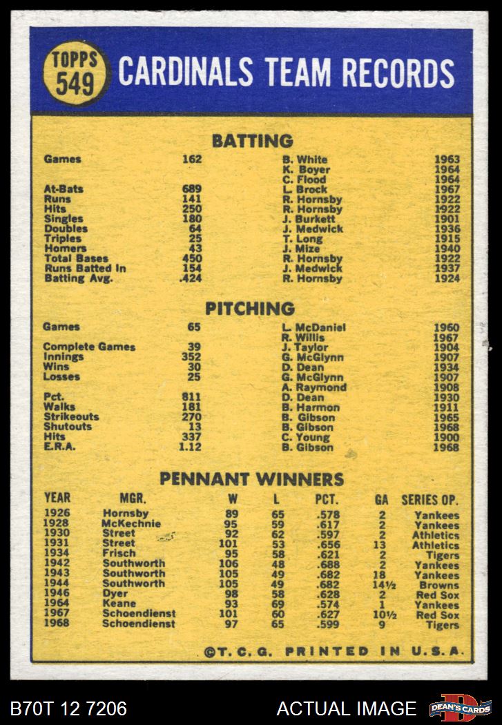 1970 Topps #549 Cardinals Team 4 - VG/EX