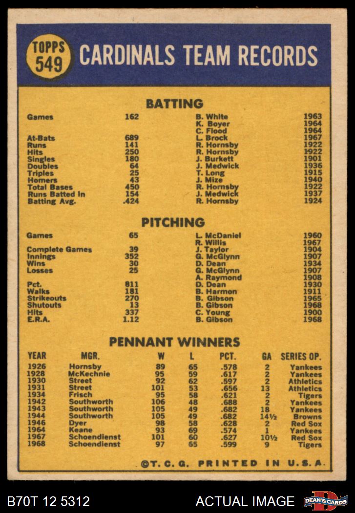 1970 Topps #549 Cardinals Team 5 - EX
