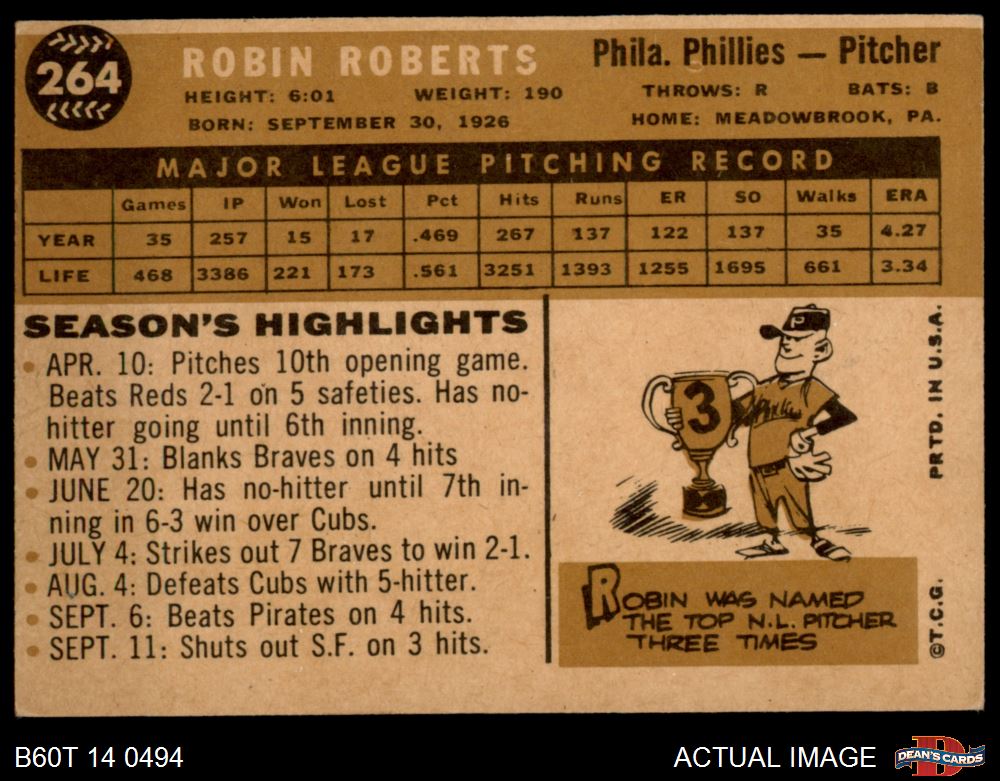 1960 Topps #264 Robin Roberts 2 - GOOD