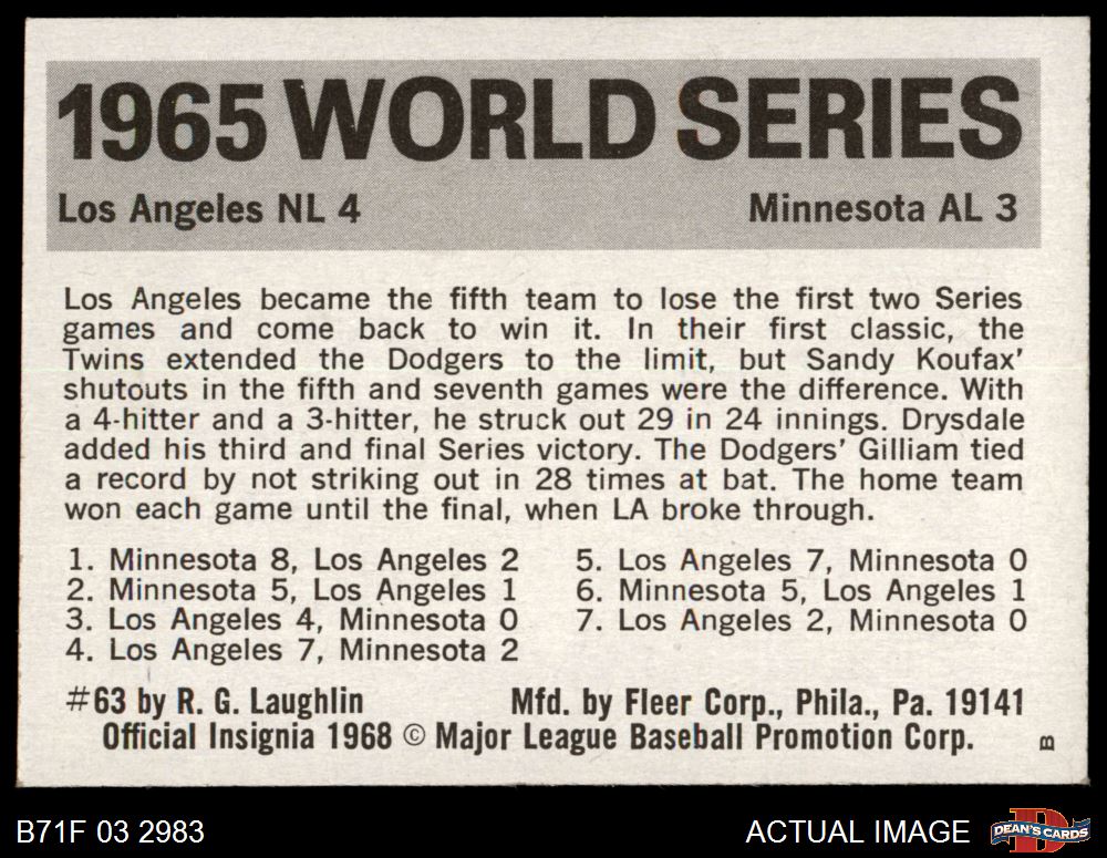 1971 Fleer World Series #63 1965 Dodgers / Twins 6 - EX/MT