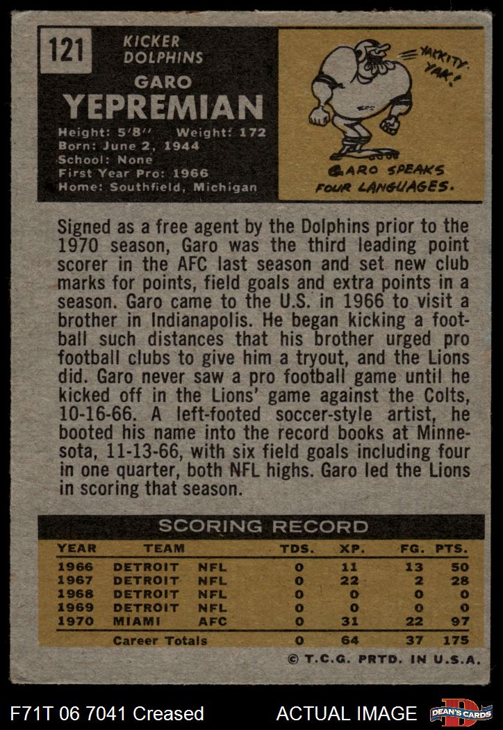 1971 Topps #121 Garo Yepremian 2 - GOOD