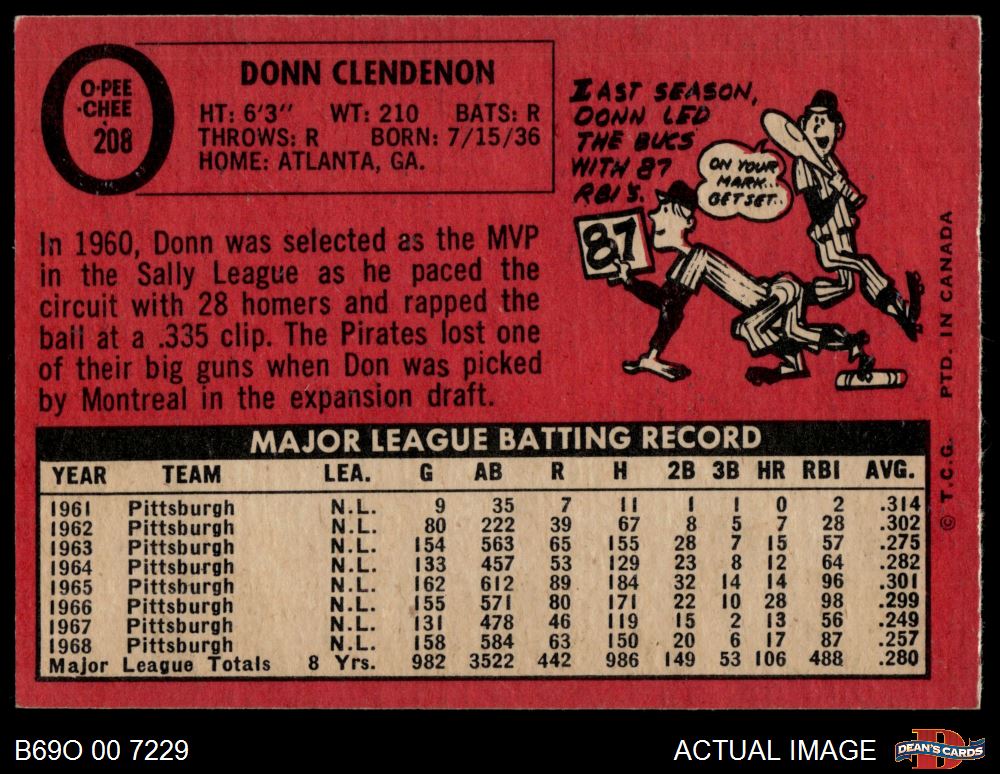 1969 O-Pee-Chee #208 Donn Clendenon 6 - EX/MT