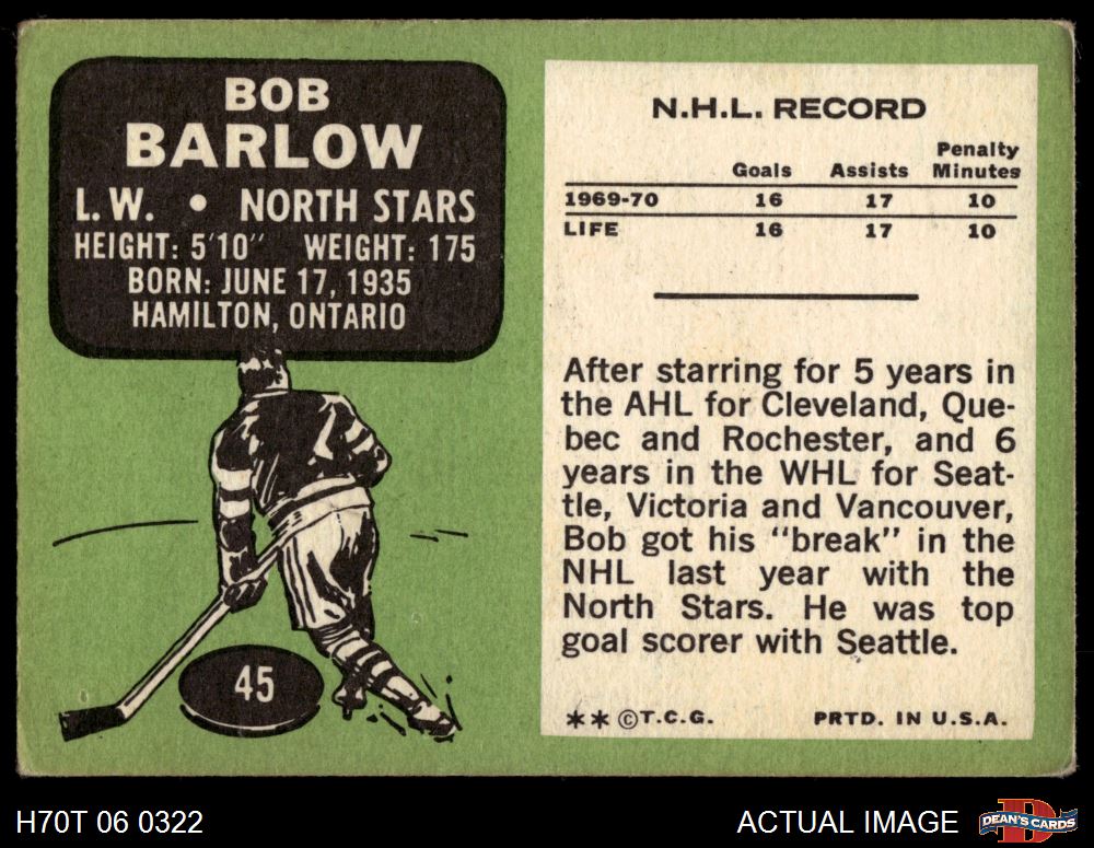 1970 Topps #45 Bob Barlow 2 - GOOD