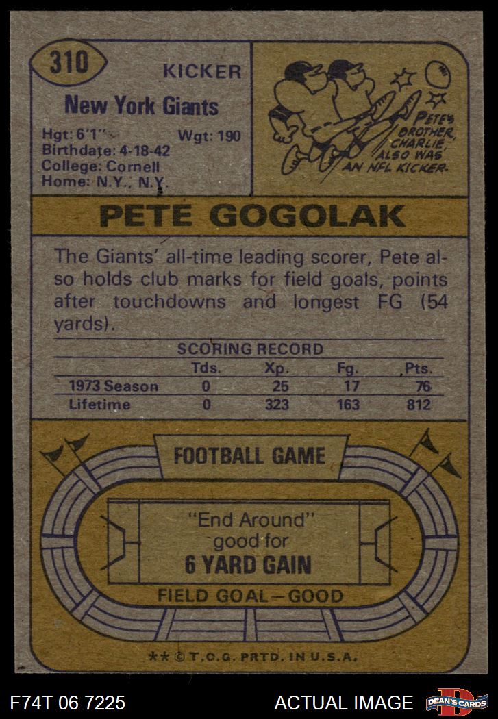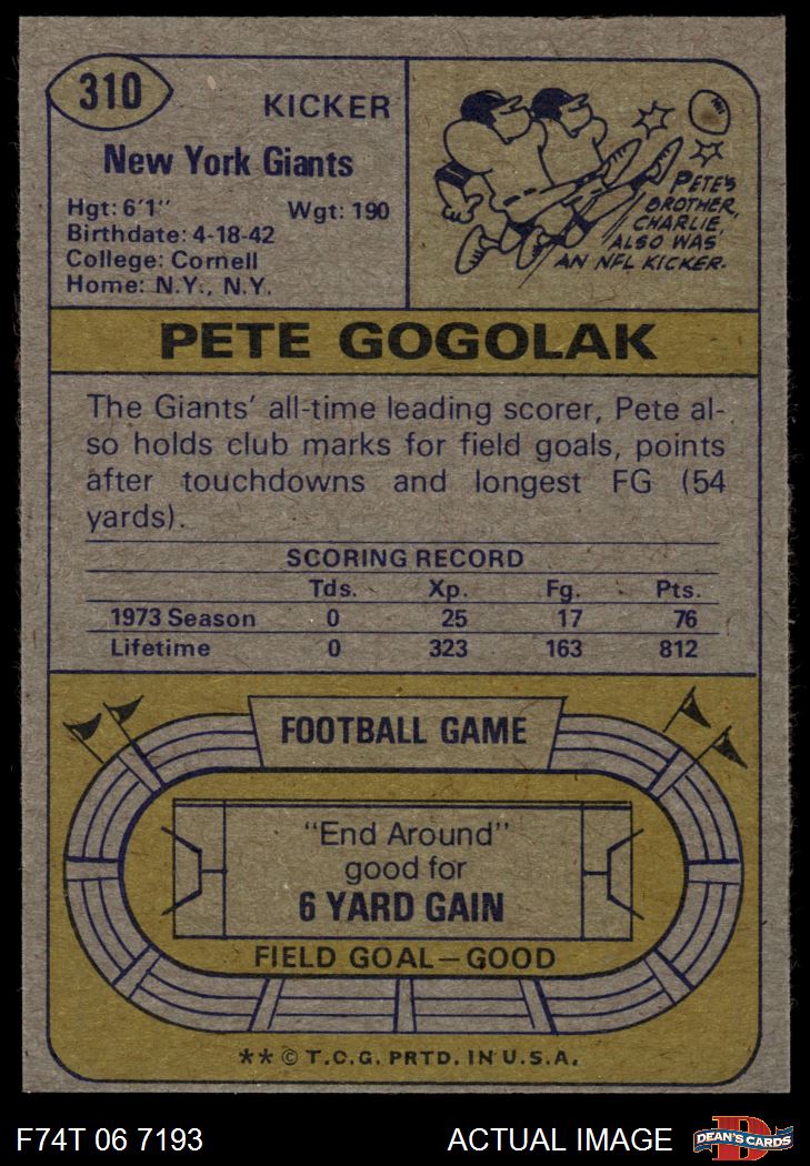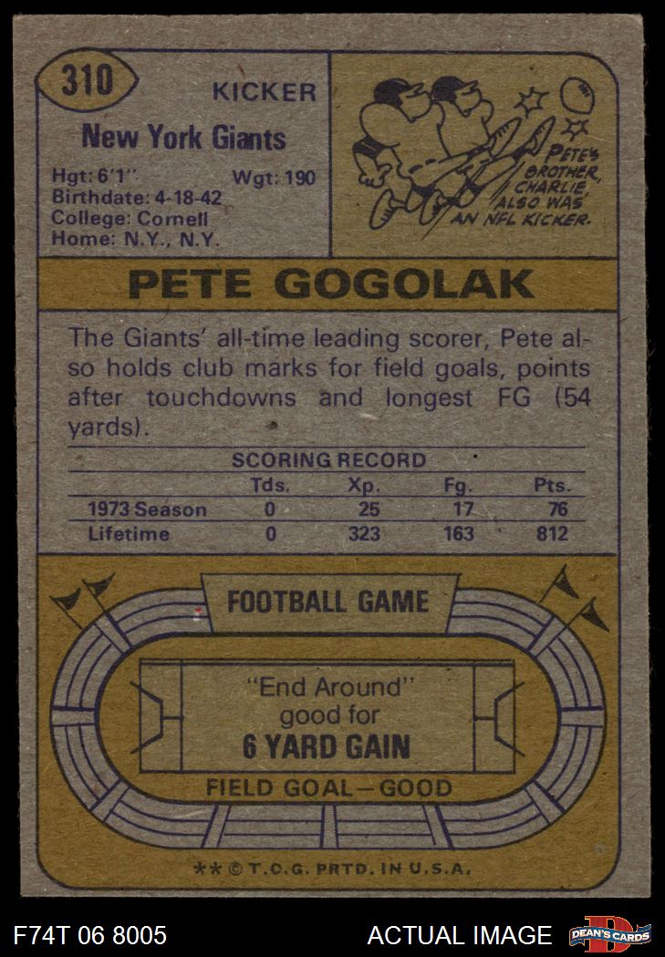 1974 Topps #310 Pete Gogolak