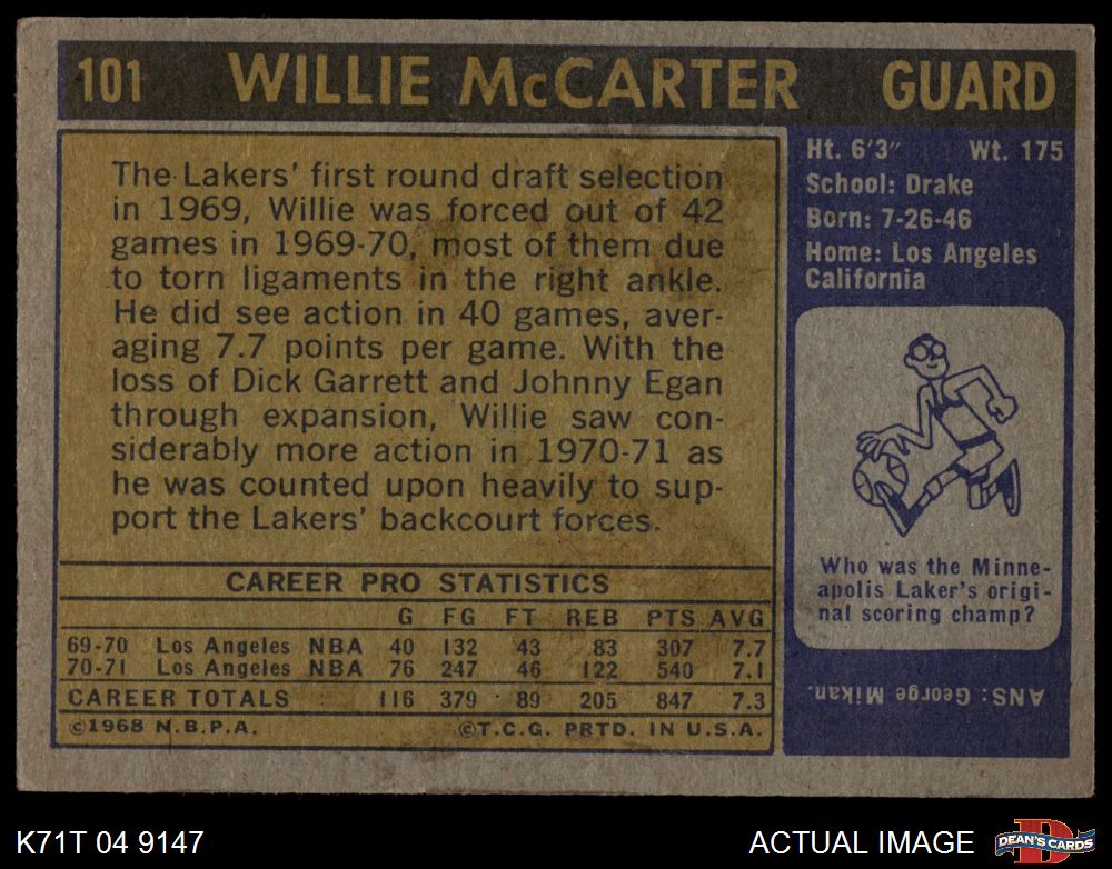 1971 Topps #101 Willie McCarter 3 - VG
