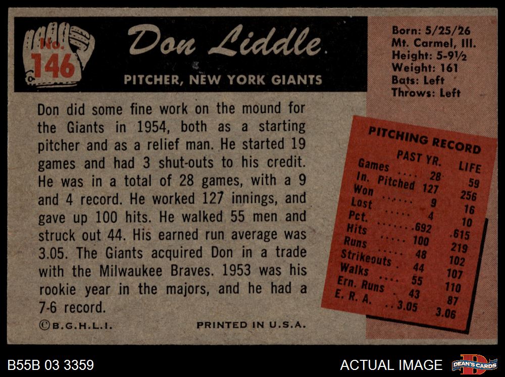 1955 Bowman #146 Don Liddle 4 - VG/EX