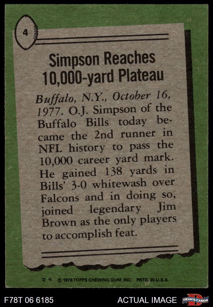 1978 Topps #4 - O.J. Simpson Reaches 10,000 Yard Plateau 3 - VG