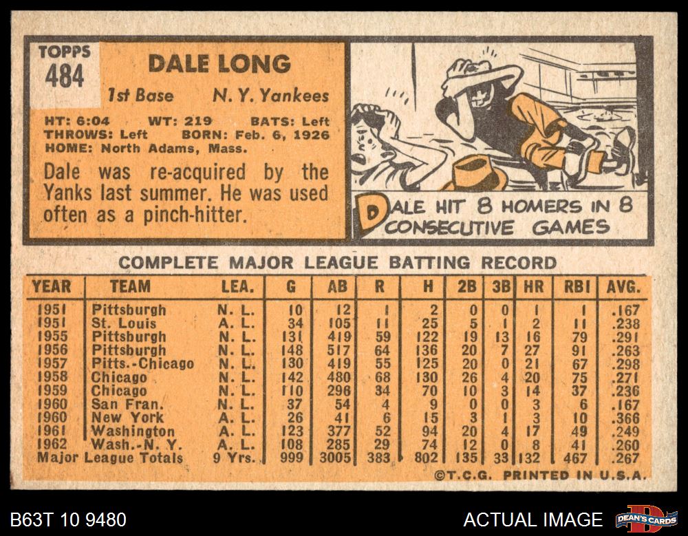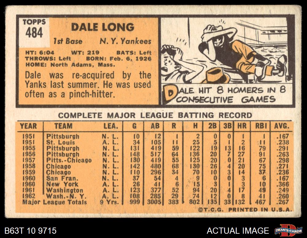 1963 Topps #484 Dale Long
