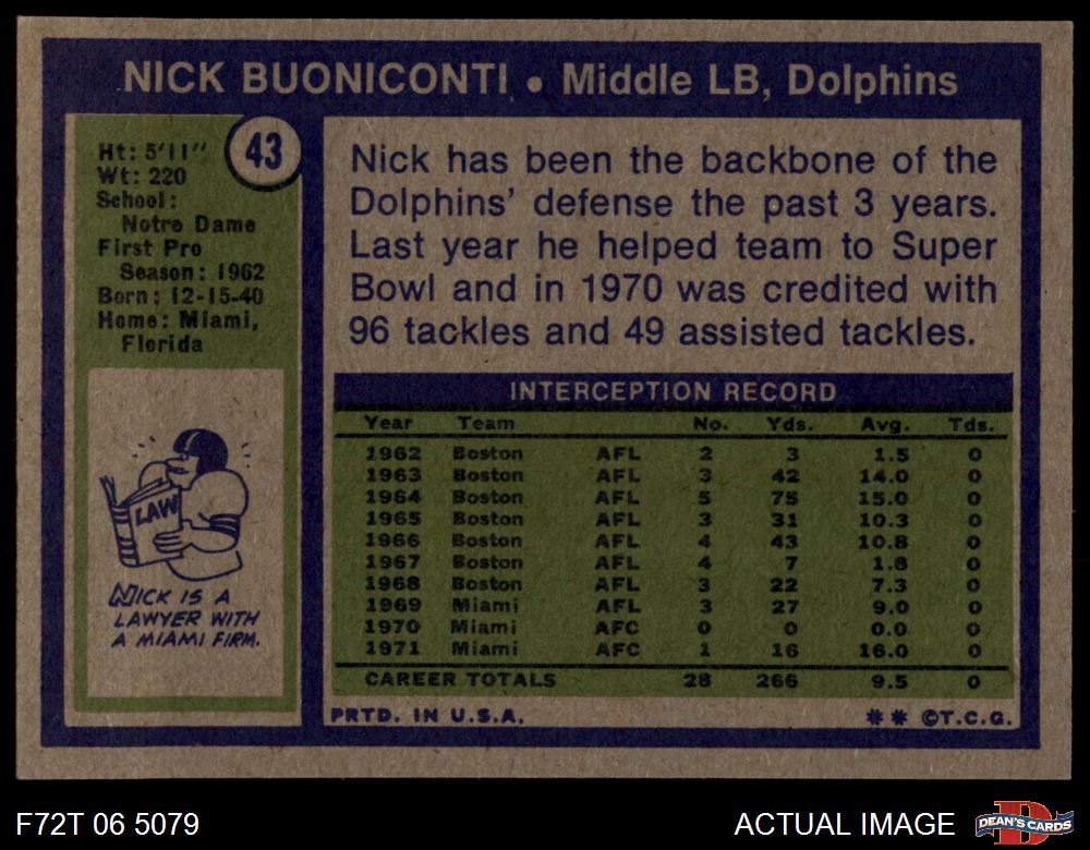 1972 Topps #43 Nick Buoniconti 5 - EX
