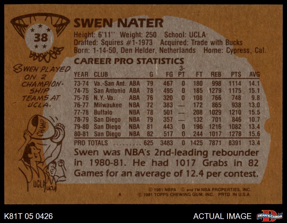1981 Topps #38 Swen Nater 8 - NM/MT