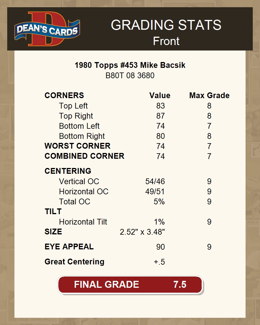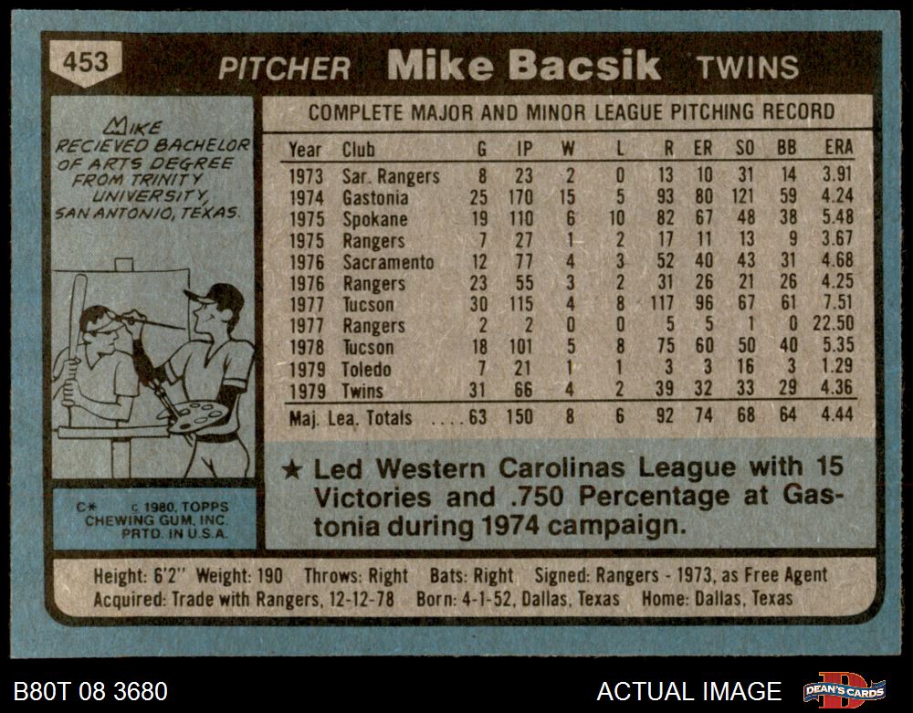 1980 Topps #453 Mike Bacsik 7.5 - NM+